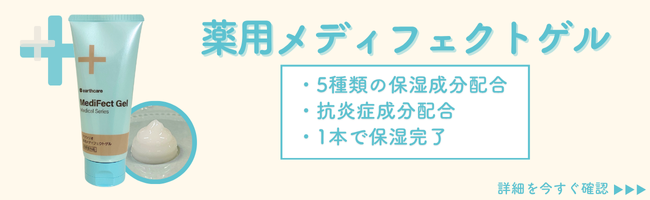 特にニキビや吹き出物がある場合は、抗炎症成分(グリチルリチン酸ジカリウム)配合の「薬用メディフェクトゲル」がおすすめです。