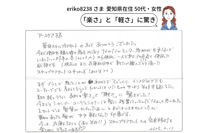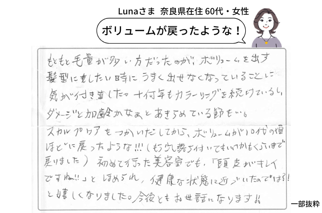 お電話でも、「どのシャンプーやコンディショナーを使っても、頭皮がベタベタになるのが続き、悩んでいた。」というお声をいただきました。