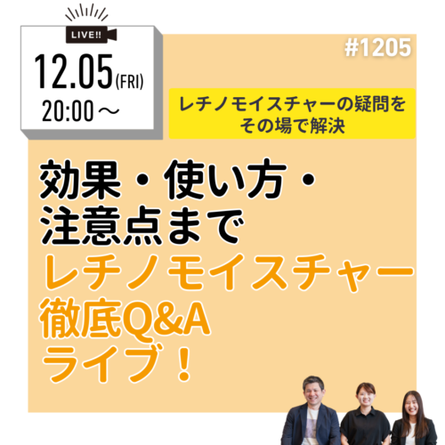 今週のライブでは、新商品『レチノモイスチャー』について、よくいただいた質問をわかりやすく解説します!