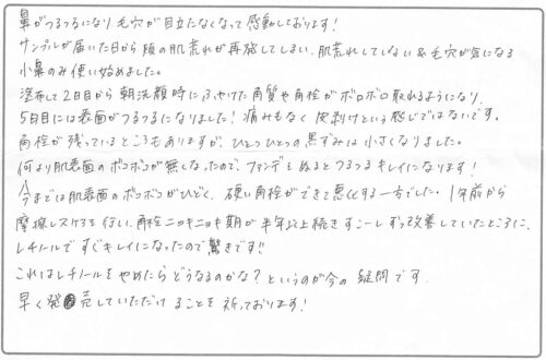 鼻がつるつるになり、毛穴が目立たなくなって感動しております!