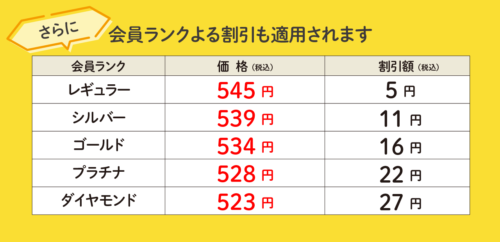 特別価格550円(税込)、さらに、会員ランクによる割引も適用されます!