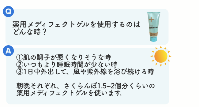 その上で、ライフスタイルや肌状態に合わせて、薬用メディフェクトゲルを取り入れるべきかご検討いただけたらと思います。