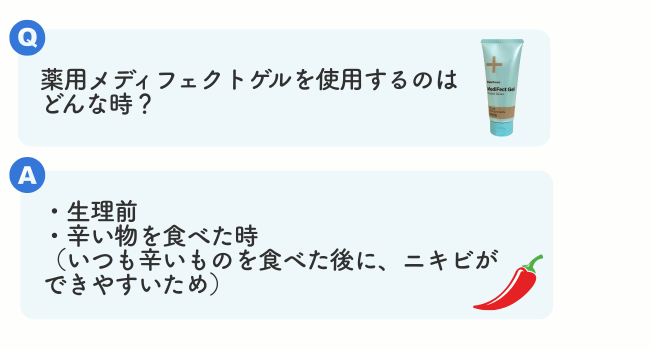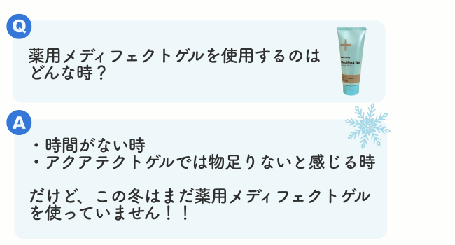 その上で、状況に合わせて薬用メディフェクトゲルと併用したり、上手に使い分けています。