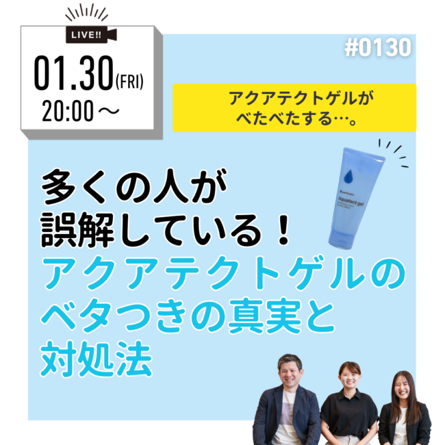 ですから、こまめな保湿が行える場合、ほとんどの方は、アクアテクトゲルでのケアで十分です。日中の保湿方法については下記動画をご覧ください。