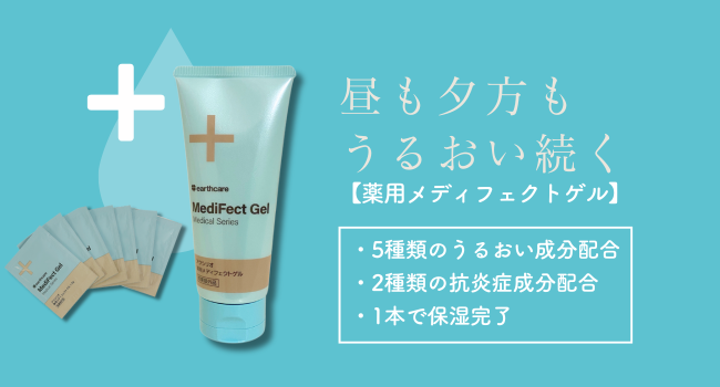 肌が乾燥するからといって、すぐに薬用メディフェクトゲルに変えるのではなく、まずはアクアテクトゲルでたっぷりと保湿を行ってみてください。