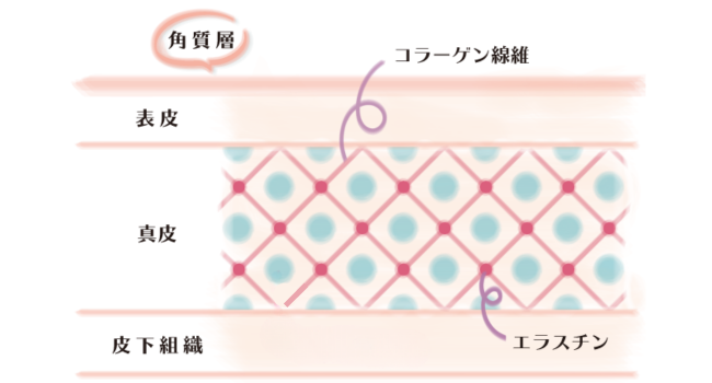 肌の中には、コラーゲンやエラスチンという、「バネ」のような成分があります。