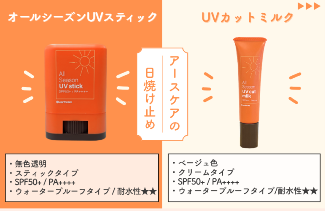 そんな私の悩みを解決してくれたのが、アースケアの日焼け止めである『UVカットミルク』と『オールシーズンUVスティック』の併用です。