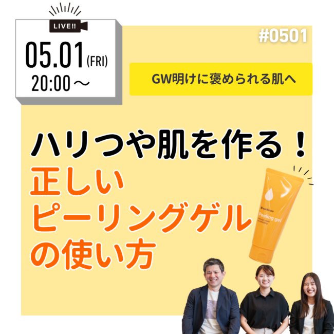 そのため今回のライブでは、ピーリングゲルの正しい使用方法を実演しながらお伝えします。