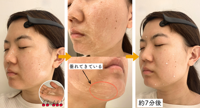 1.適量(さくらんぼ2〜3つ分)を顔に広げる