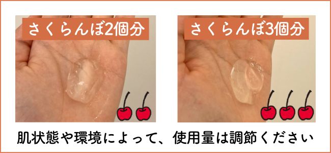 浸透しきらなかったゲルが、肌の上に残っているくらいでちょうどいいです。